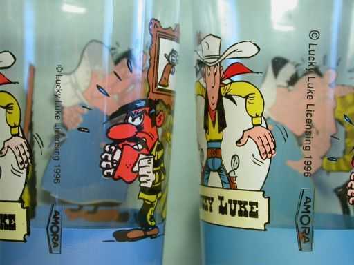 | Importante série de verres. 8 dessins différents ont été déclinés sur deux formats, moutarde et long drink (en réalité il s'agissait de promotion 20% de moutarde gratuite!). Cette série est sortie en France & en Belgique. Le copyright est différent et les verres français sont numérotés. Tous les dessins n'ont cependant pas été repris sous chaque format ou dans les deux pays. |