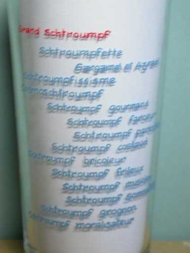 | Schtroumpf somnambule | Schtroumpf grognon | Schtroumpf moralisateur | un exemple d'arrière du verre |