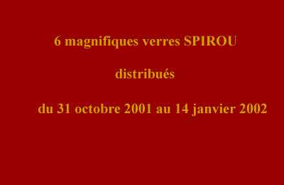 | Série de 6 verres sablés, format Long Drink. Distribués en Belgique fin 2001, début 2002 dans les fast-food Quick. |